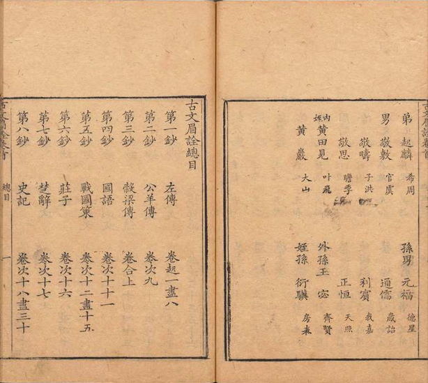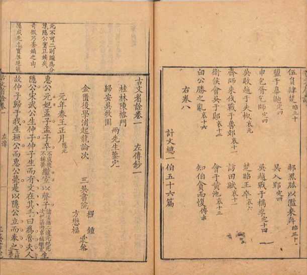 《古文眉诠》是由清代学者浦起龙主持编选、程钟与方懋福参与汇参的古文评注著作,成书于乾隆年间(1741-1744年)。全书共七十九卷,附卷首一卷,收录先秦至南宋文章807篇,涵盖《左传》《史记》等27类经典文献,体例按时代顺序编排并采用夹注、眉批、尾批等评点形式。该书以三吴书院刻本为通行版本。