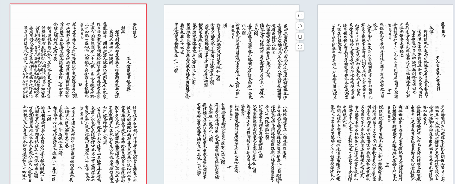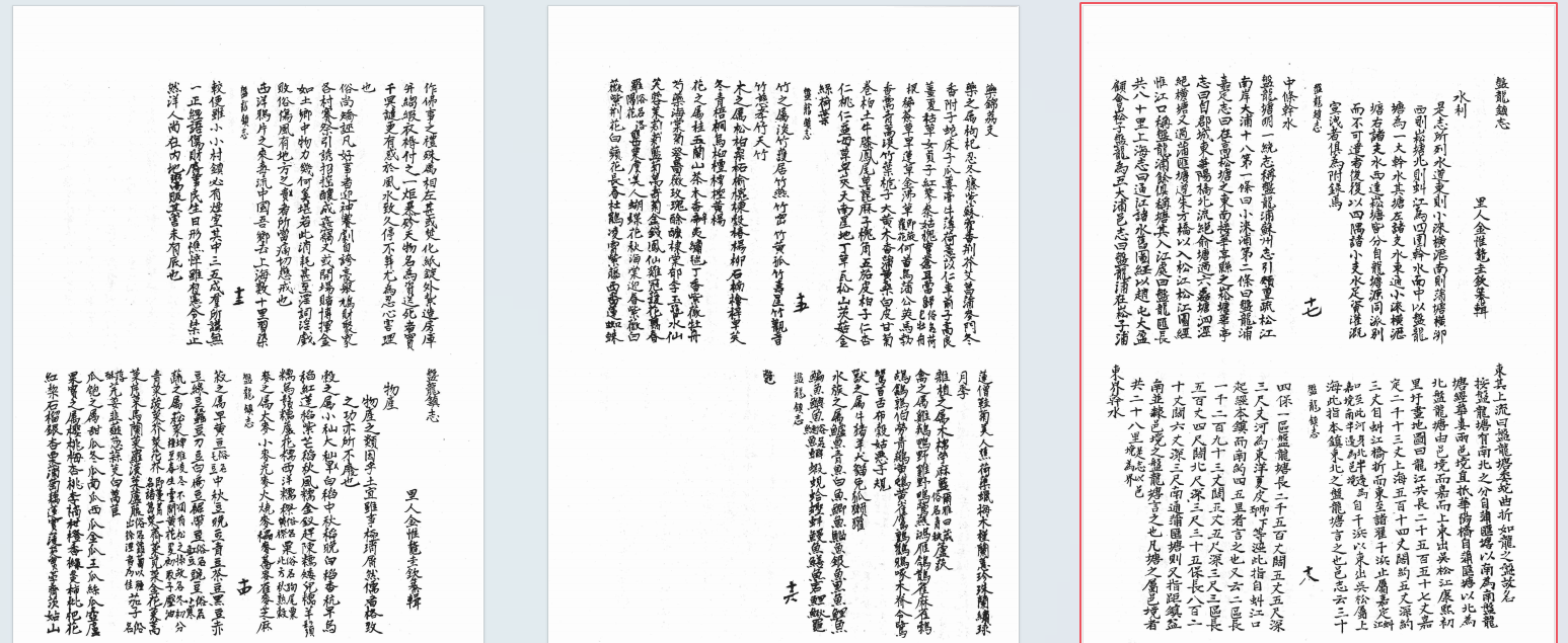 重辑枫泾小志, 10巻 . 续修枫泾小志, 10巻首1巻 . 重辑张堰志, 12巻首1巻末1巻 . 金泽小志, 6巻 . 珠里小志, 18巻首1巻 . 盘龙镇志 . 蒸里志略, 12巻 . 章练小志, 8巻 . 外冈志, 2巻 . 续外冈志, 4巻(图6)