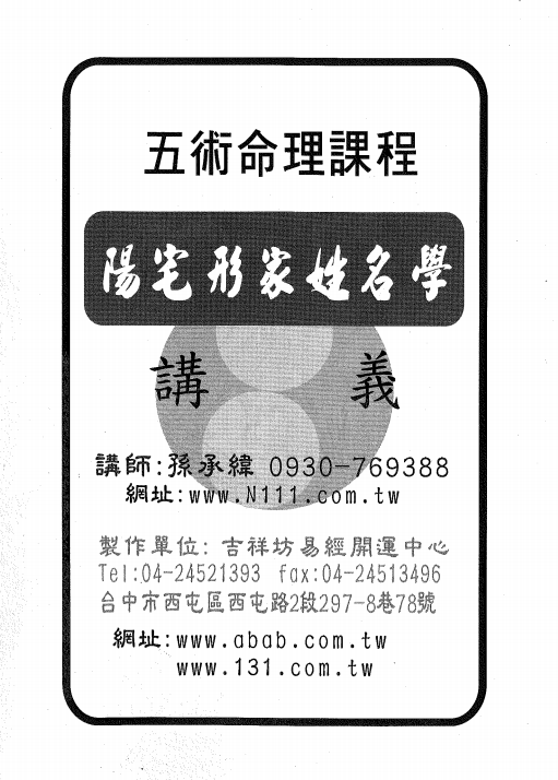 姓名学书籍《形家姓名学教学讲义》孙承纬