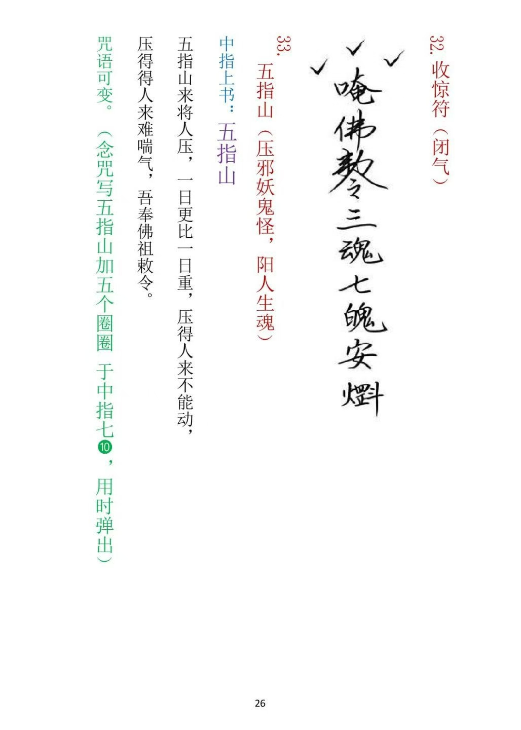 简介:《麻衣教整人破风水驱邪阵法》民间秘法相关书籍,内容包含:1.请师总咒2.增法咒3.水碗圆光(修炼四十九天可在水碗中看见图像)4.雪山令(退烧退热用)5.水神法(惩恶用)6.公鸡啼鸣法(整人每夜梦中被鸡鸣声吵醒)7.九龙化骨(化异物卡喉)8.刀剑神伤法(惩恶用,类似放阴箭)9.三昧真火法(斗法驱邪惩恶用)10.捆仙索(捆邪用)11.雪山掌(伤人五脏寒气入体气血不通,七日不解 绝症而亡)12.飞针伤人杀鬼术(中术者每日莫名感觉针刺,久而久之全身刺痛)13.拘魂法(拘生魂下邪法)14.止血法15.八卦藏魂法(斗法驱邪前用)16.解藏魂17.大海水(斗法用,收一切邪法)18.聚阳水(提升阳气功力)19.丹砂山(敕朱砂杀鬼用)20.雄黄山(敕雄黄)21.香灰山(敕香灰困邪)22.沙土咒(敕泥土砂石压鬼邪生魂)23.放阴箭法24.招财阵法25.大药破邪法(解邪术破附体)26.五雷符27.金刚指(惩恶用)28.驱邪符29.五路财神符30.观音水31.驱邪掌32.收惊符33.五指山(压邪妖鬼怪,阳人生魂)34.欢喜和合符35.六字真言贴36.金刚镇符37.藏魂法,解藏魂38.又八卦藏魂39.防阴箭阴矛盾法40.五行指(取五脏之气打人伤鬼驱邪治病)41.五行掌(伤人打鬼)42.天蓬掌(驱邪破附体用)43.迷魂香(香上用法,致人头昏眼花)44.酒变水45.水变酒46.九龙吞酒法47.三敕百解消灾符48.中坛元帅镇宅符49.五雷阵(祭练物品用)50.九牛法(惩恶用)51.超度符52.柳叶飞刀(惩恶用)53.麻衣煞风水法(惩恶用)54.解麻衣煞(可解一切风水煞)55.兵马坛法(需要野外收兵,安兵马罐)56.收兵,安坛,祭练,发兵出营,收兵回营。57.狐仙增阴法58.万病一碗水59.文昌符60.玉皇斩鬼擒鬼王鬼仙符61.升官符62.六甲六丁护身符63.拘魂法(惩恶用)64.千里拘魂(惩恶用)65.和合法66.掌上迷合法67.招桃花符68.斩桃花符69.旺情水法(种术者意乱情迷)70.金枪不倒71.太极增功增法水72.破小人,迎贵人73.解毒水74.安神定心水75.小千斤(整人用)76.大千斤(整人用)77.头痛香法(整人用香下咒,闻香味头痛欲裂)78.九宫八卦捉邪阵79.铜皮铁骨法(久练强身,防一切神伤点打)80.封禁法81.消灾灯阵82.斗邪师阴风法83.迷魂法84.周公敕梦入梦大法(可控制中术者梦境)85.天师打邪法(斗法用)86.藏魂符87.香云藏坛(将自己法坛藏起来,不被邪师发现)88.杨公破万煞法(破解一切风水煞)89.九天玄女斩桃花符90.麻衣镇宅大符。