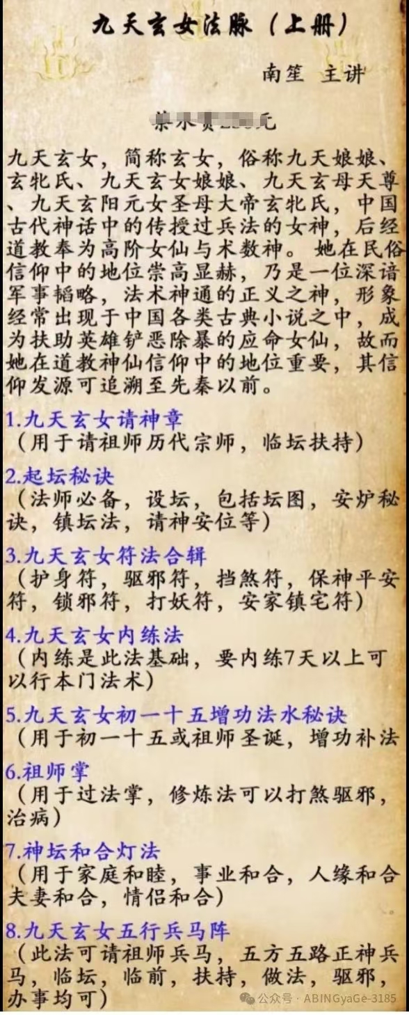 • 民间秘法《南笙九天玄女法脉三套》