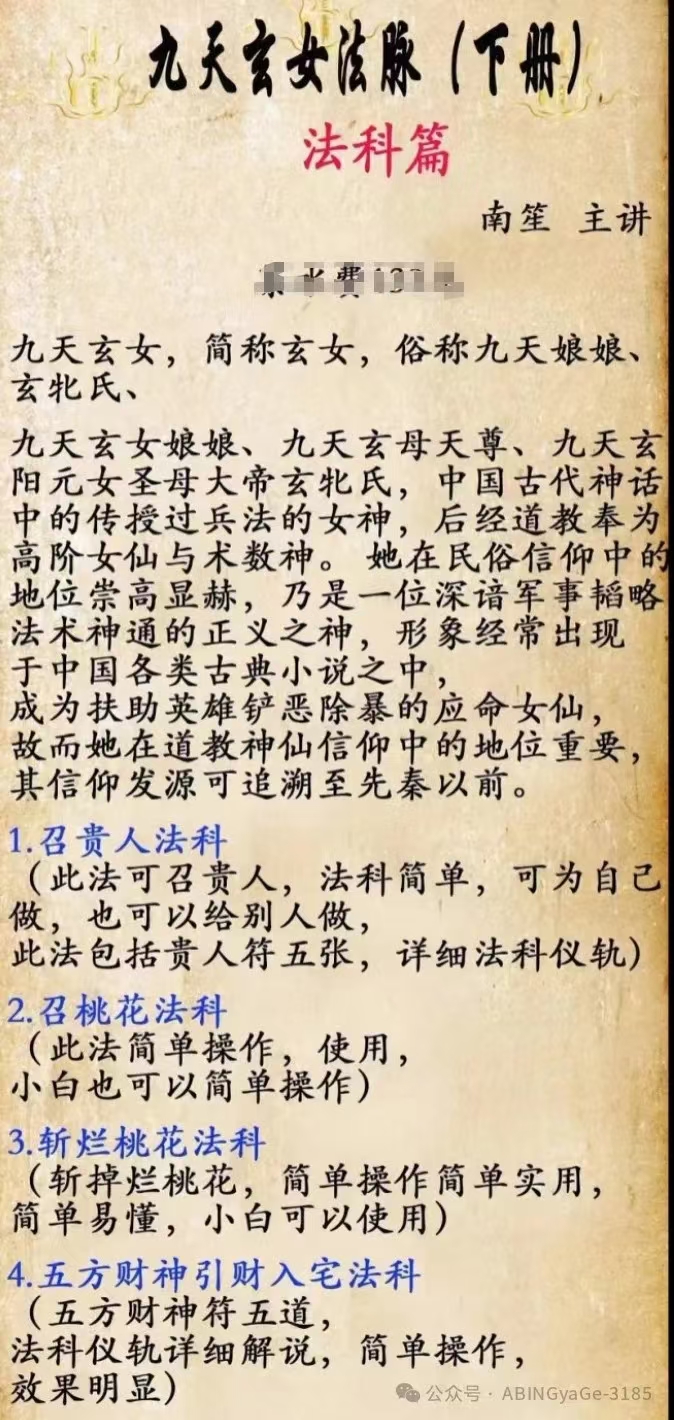 民间秘法《南笙九天玄女法脉三套》