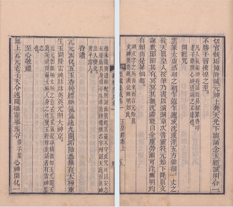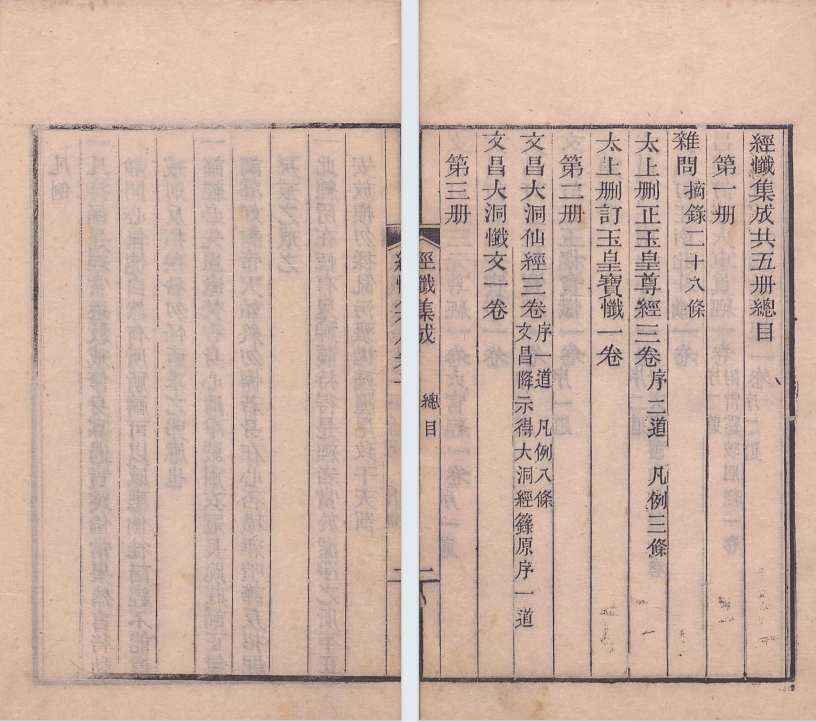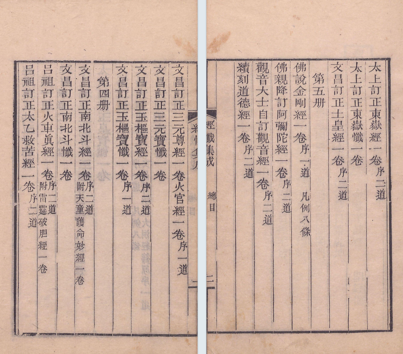 简介:《经忏集成》劉沅注,同治11,道家相关古籍。内容包含:杂问摘录二十八条,太上删正玉皇尊经三卷,太上删订玉皇宝忏一卷,文昌大洞仙经三卷,文昌降示得大洞经箓原序一道,文昌大洞忏文一卷,文昌订正三元尊经一卷,火官经一卷,文昌订正三元宝忏一卷,文昌订正玉枢宝经一卷,文昌订正玉枢宝忏一卷,文昌订正南北斗经一卷附天童护命妙经一卷,文昌订正南北斗忏一卷,吕祖订正火车真经一卷附雷霆破胆经一卷,吕祖订正太乙救苦经一卷,太上订正东岳经一卷,太上订正东岳忏一卷,文昌订正土皇经一卷,佛说金刚经一卷凡例八条,佛亲降订阿弥陀经一卷,观音大士自订观音经一卷,续刻道德经一卷,太上删正玉皇尊经善本,圣祖仁皇帝庙讳敬以元字有圈别之金华子注释开经偈,宝笈琅函演妙文,炳灵慧日耀乾坤。红云旋绕通明殿。黄道宏开阊阖门元始凝神凭玉座。诸天应会集琼轩。香烟薰透乾坤界。万圣千真捧至尊。玊皇统御大天尊。总赞全经之,义其词易晓,净心神咒。