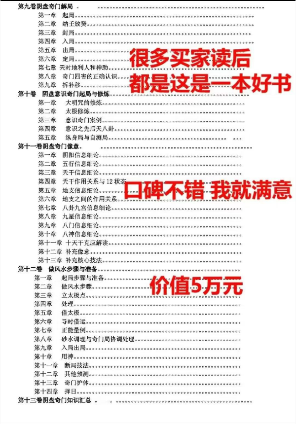 简介:《乾坤阴盘奇门》乾坤道家阴盘奇门,阴盘奇门相关书籍。本书不仅仅可适用零基础的朋友,想要精进的也可以结缘,里面传授了不少阴盘奇门的核心秘法。