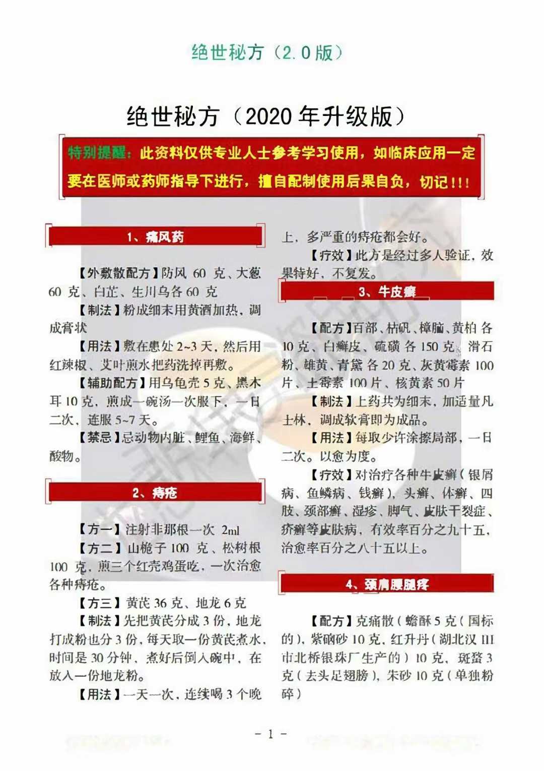 [爱心]1.痛风药只需四种中药三天见效。