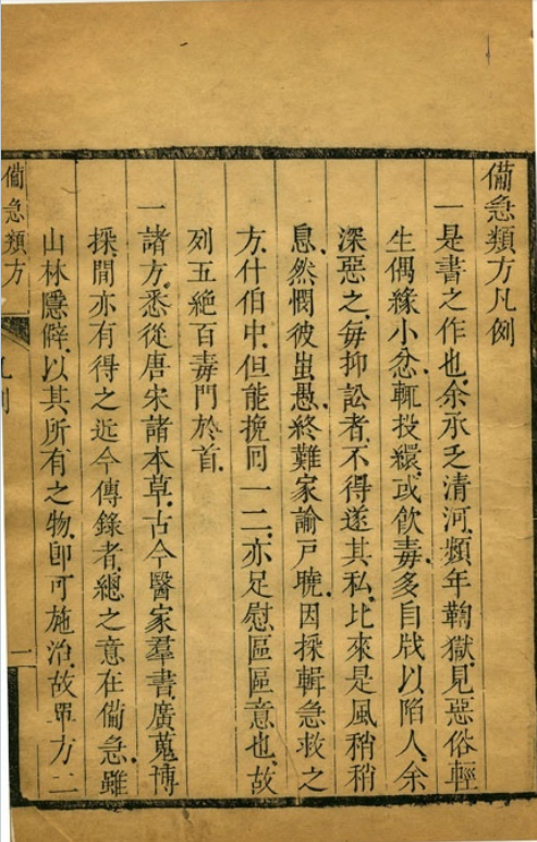 简介:《备急类方》清卢承琰纂辑,康熙五十二年(1713)刻本顺六堂藏版,中医方书相关古籍。本书分五绝、百毒、诸中、哽咽、啮伤、妊娠、生产、杂症、婴儿、疮疡、怪病、灾荒等12门,门下列约150余类病症,按门类汇辑内、外、妇、儿、急救诸方。多取自历代本草、医书,以“单方二、三味之剂居多”。