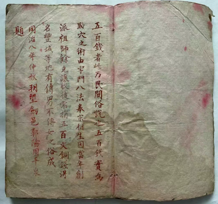 简介:《五百钱点解穴秘传 》清代同治年抄本,中医跌打真传秘本。“五百钱点解”是江西民间流传的一种点穴术,属于传统武术与中医经络理论结合的秘传技艺。其核心是通过特定手法和时辰对穴位施压,可能引发气血阻滞甚至致命效果。起源于清代,由余克让创立,因学艺需交五百文铜钱得名。该技艺以江西丰城、樟树、高安等地为正宗,传承严格,传男不传女,注重品德筛选。