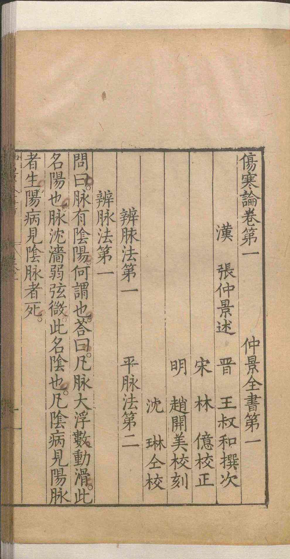 《重镌医要三书》伤寒六经定法