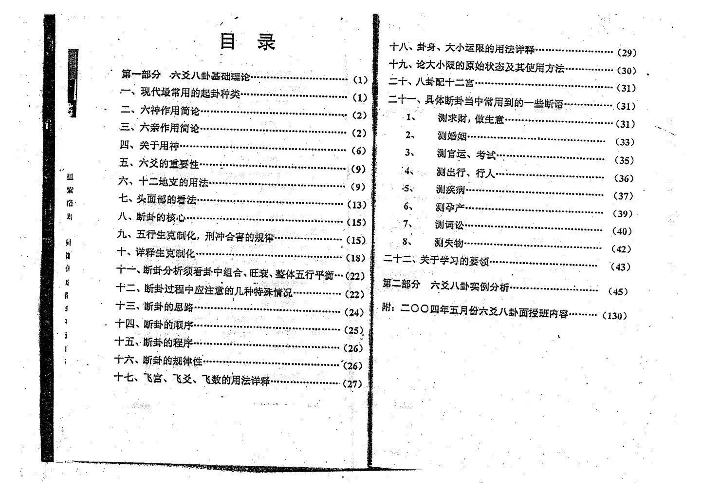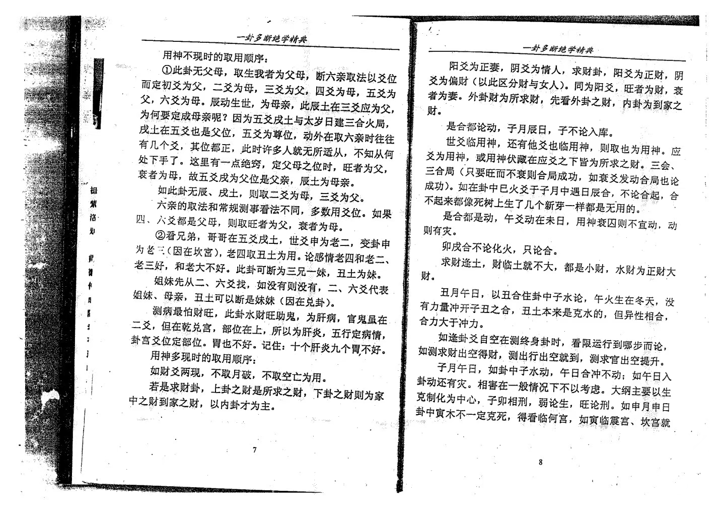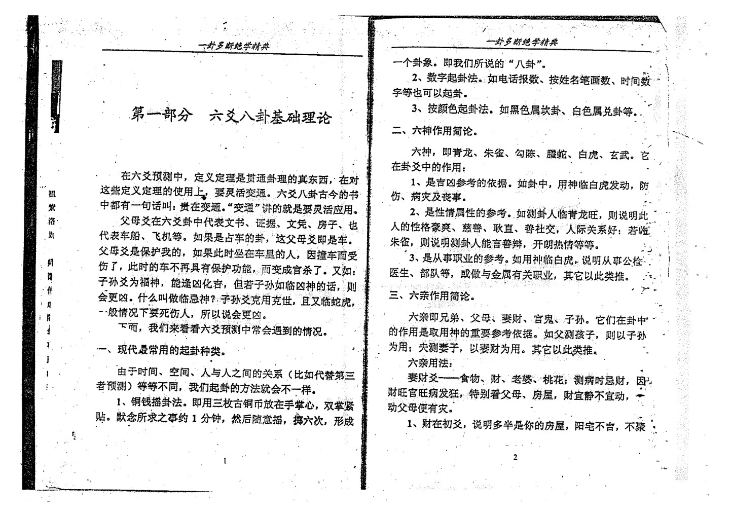 简介:《一卦多断绝学精典》李计忠著 是李大师新一部易学巨著精典六爻八卦基础理论现代最常用的起卦种类,六神作用简论,六亲作用简论,关于用神,六爻的重要性,十二地支的用法,头面部的看法,断卦的核心,五行生克制化刑冲合害规律,详释生克制化,断卦分析须年卦中组合旺衰整体五行平衡,断卦过程中应注意的几种特殊情况,断卦的思路,断卦的顺序,断卦的程序,断卦的规律性,飞宫飞爻飞数的用法详释,卦身大小运限的用法详释,论大小限的原始状态及其使用方法,八卦配十二宫,具体断卦当中常用到的一些断语,测求财,做生意,测婚姻,测官运考试,测出行行人,测疾病,测孕产,测词讼,测失物,关于学习习的要领,第二部分 六爻八卦实例分析。